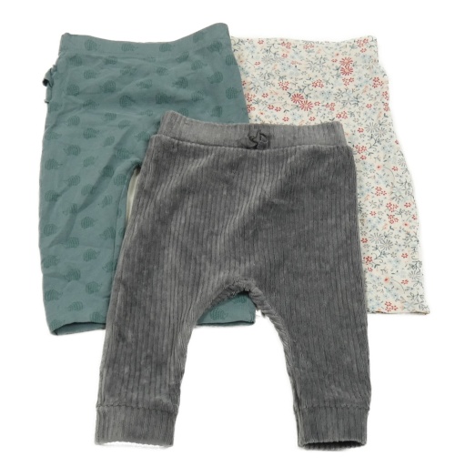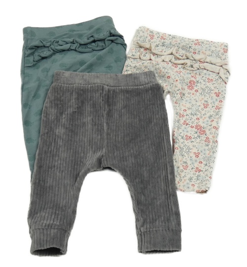 3set - 2x legíny s volánky - zelené + bílé květované + 1x šedé žebrované sametové tepláky