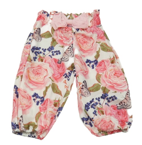 Bílo-růžové květované lehké kalhoty s mašlí