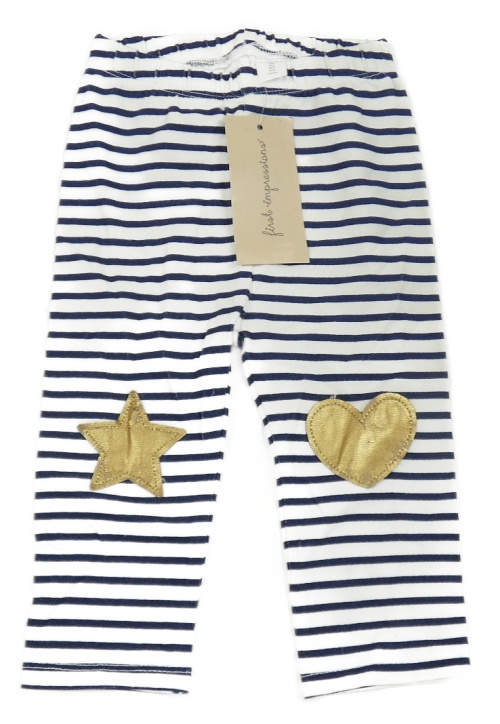 Nové - bílo-tmavomodré pruhované legíny s potiskem