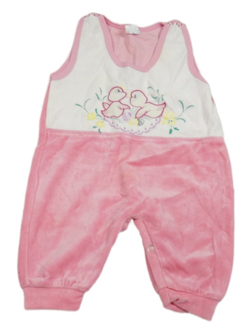 Bílo-růžové sametové laclové tepláky s ptáčky