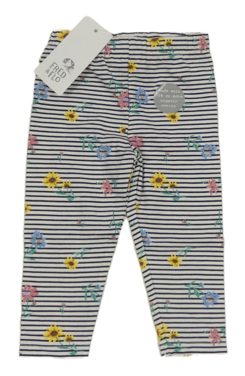 Nové - bílo-tmavomodré pruhované legíny s kytičkami F&F