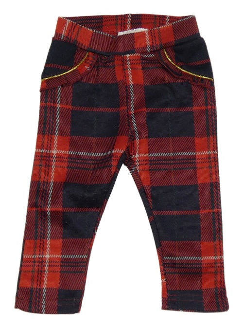 Červeno-tmavomodré kostkované legíny s volánky Ergee