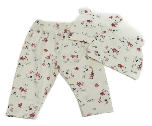 3set - Bílé lehké tepláky s kočkami + 2x čepice