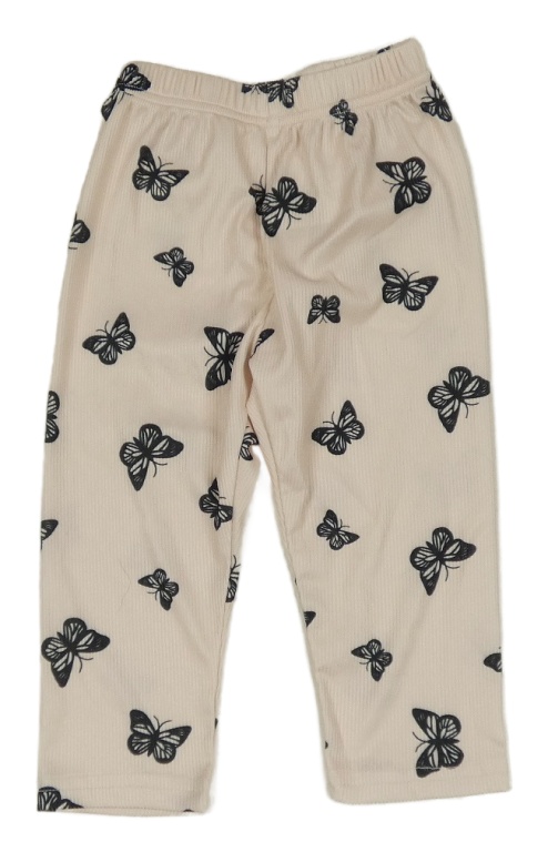 Pudrové žebrované kalhoty s motýly