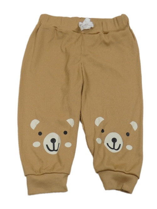 Hnědé žebrované tepláky s medvídky a mašlí