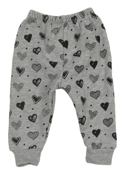 Šedé melírované puntíkaté tepláky se srdíčky