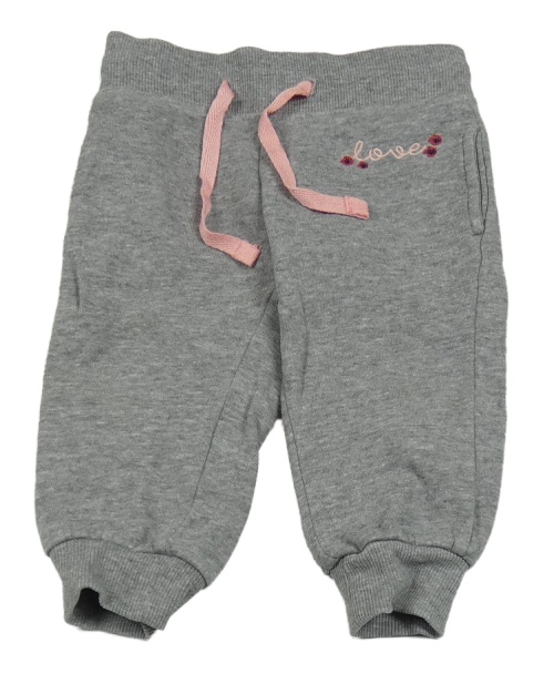 Šedé melírované tepláky s nápisem a květy POCOPIANO
