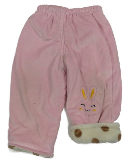 Světlerůžové sametové zateplené kalhoty s králíčkem