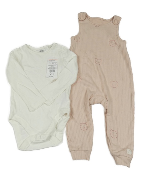Nové - 2Set - Pudrové žebrované laclové tepláky s medvídky + bílé body F&F