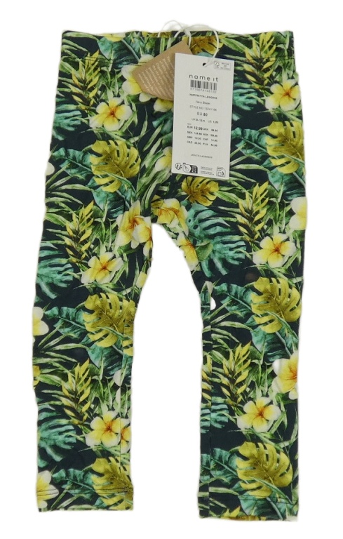 Nové - tmavomodré turecké legíny s květy a lístečky name it.