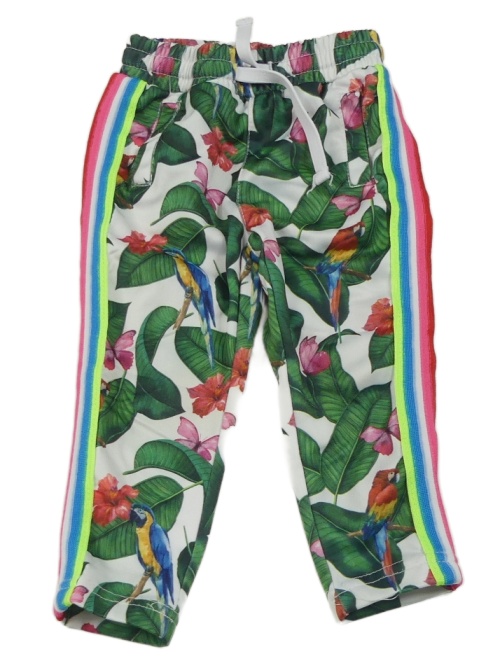 Bílé sportovní tepláky s lístečky a papoušky a barevnými pruhy BABY blue