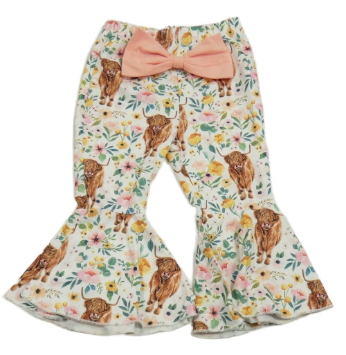 Bílé hippie kalhoty s kytičkami a bizony a mašlí