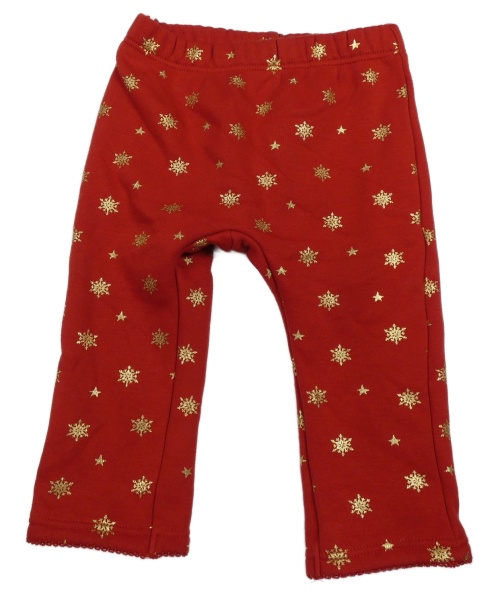 Červené teplákové zateplené legíny se zlatými vločkami a hvězdičkami