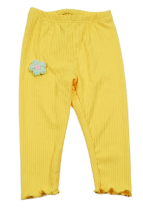 Hořčicové žebrované legíny s květinou
