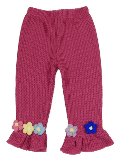 Růžové pletené kalhoty s 3D květinami