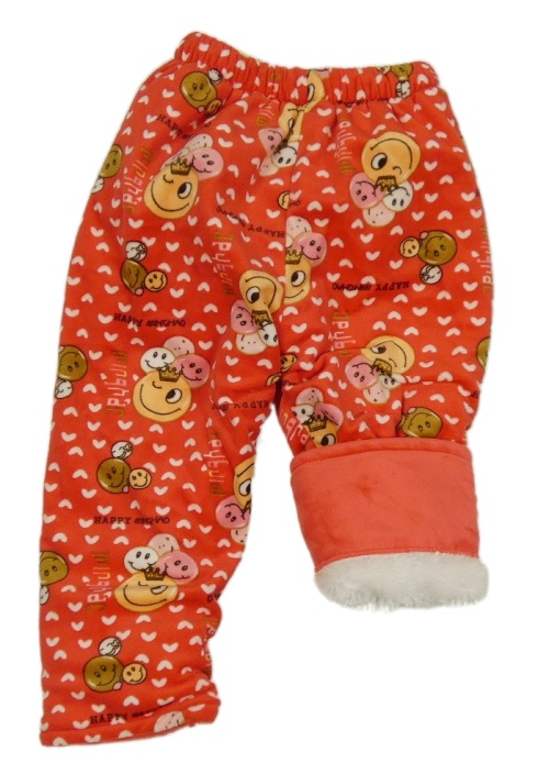ČErvené plyšové zateplené kalhoty se smajlíky