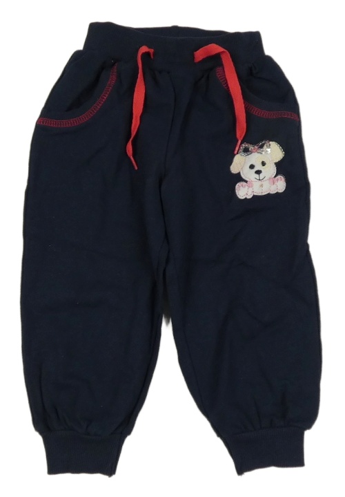 Tmavomodré tepláky s psem s flitry