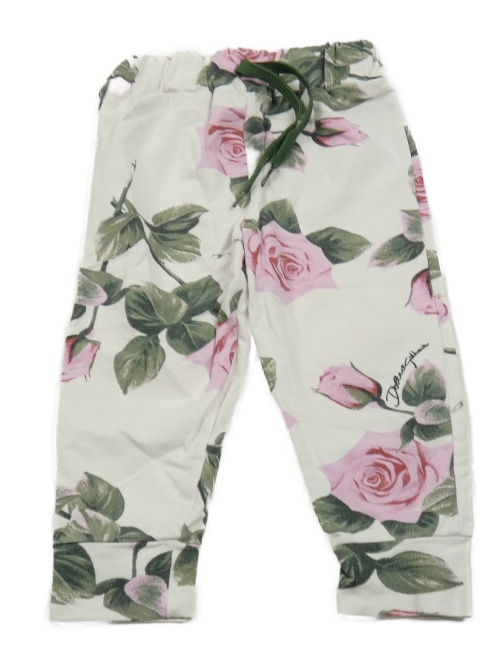 Bílo-růžovo-zelené květované tepláky