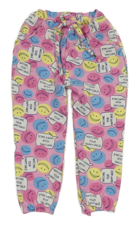Růžové tepláky se smajlíky a nápisy