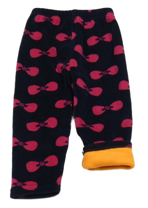 Tmavomodré plyšové teplé tepláky s mašličkami