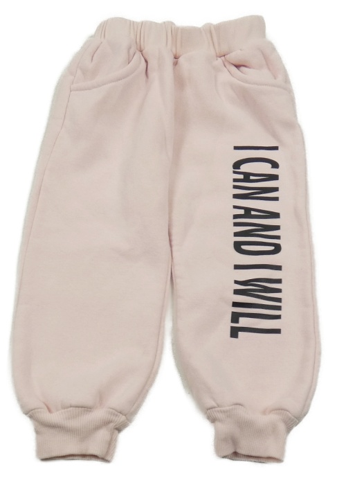 Růžové tepláky s nápisem