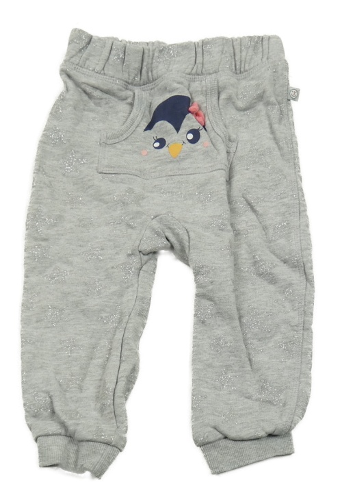 Šedé melírované teplé tepláky s kapsou s ptáčkem a stříbrnými hvězdičkami Liegelind