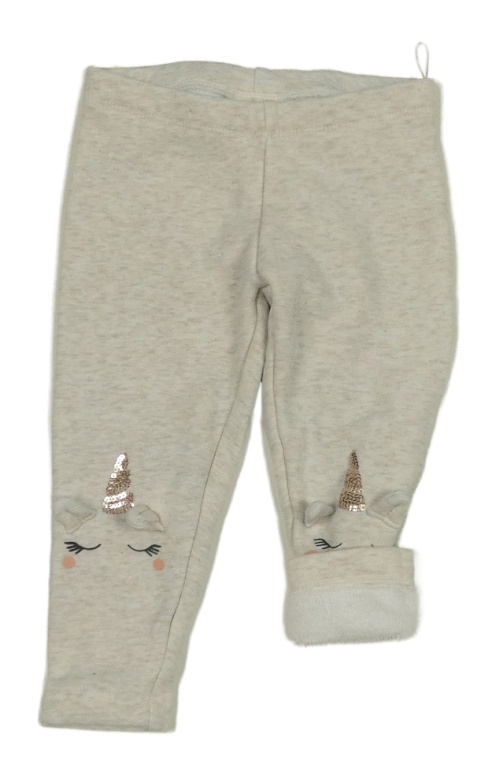 Světlebéžové melírované zateplené legíny s jednorožci s flitry C&A
