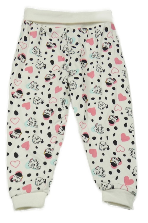Bílo-černo-růžové puntíkaté tepláky s Dalmatiny a srdíčky Disney