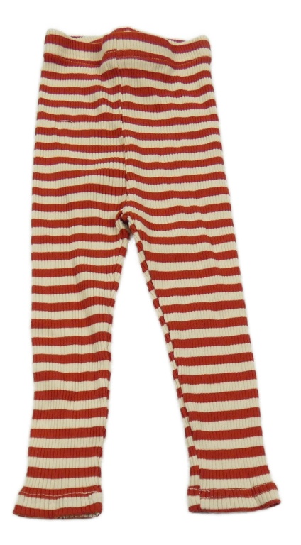 Červeno-béžové pruhované žebrované legíny