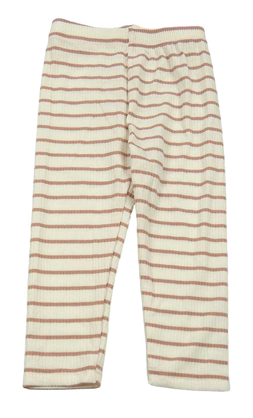 Smetanovo-starorůžové pruhované žebrované legíny