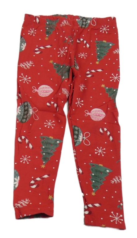 Červené puntíkaté teplé legíny se stromky a hůlkami