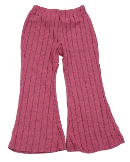 Růžovo-šedé melírované žebrované pletené flare kalhoty