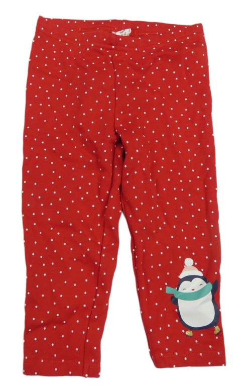 Červené puntíkaté teplákové zateplené legíny s tučňáčkem C&A