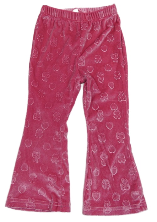 Růžové sametové flare legíny se srdíčky a mašlemi Shein
