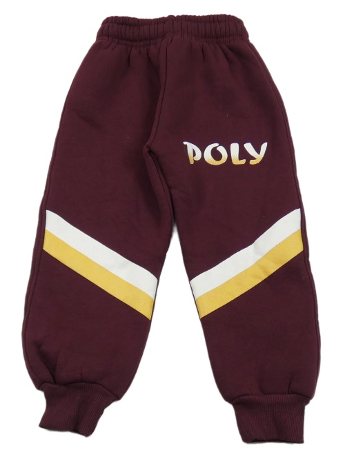Vínové tepláky s pruhy a nápisem