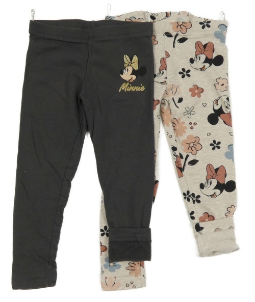 2Set - 2x zateplené legíny s Minnie - antracitové + béžové květované C&A