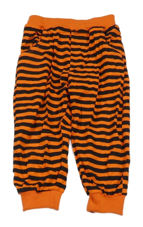 Oranžovo-černé pruhované tepláky