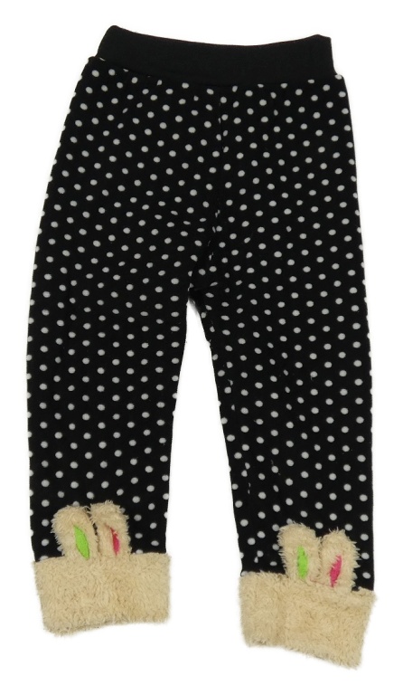 Černé plyšové puntíkaté legíny s králíky