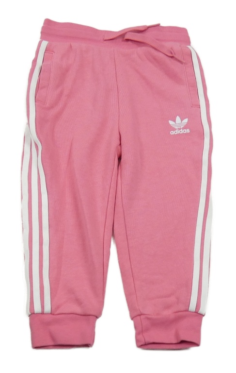 Růžové tepláky s bílým pruhem a logem Adidas
