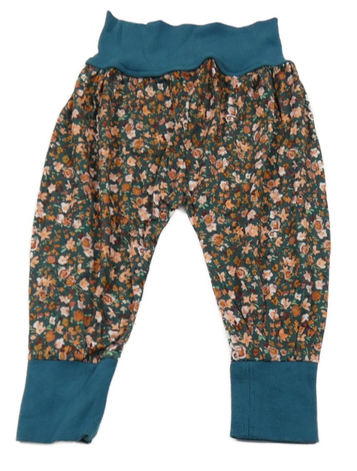 Petrolejové turecké kalhoty s kytičkami