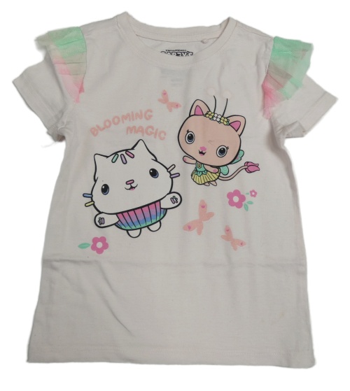 Světlerůžové tričko s kočičkami a tylovými volánky sinsay