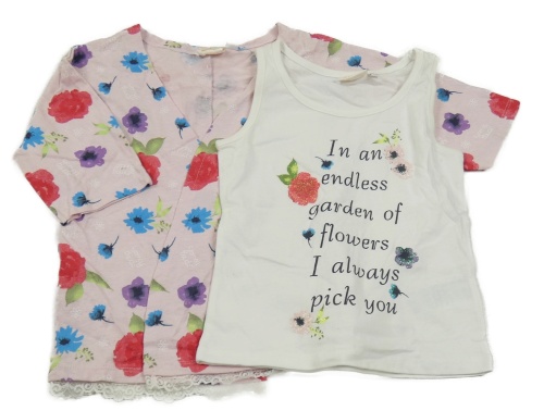 2 set - bílý top s nápisy + světlerůžový květovaný cardigan kids
