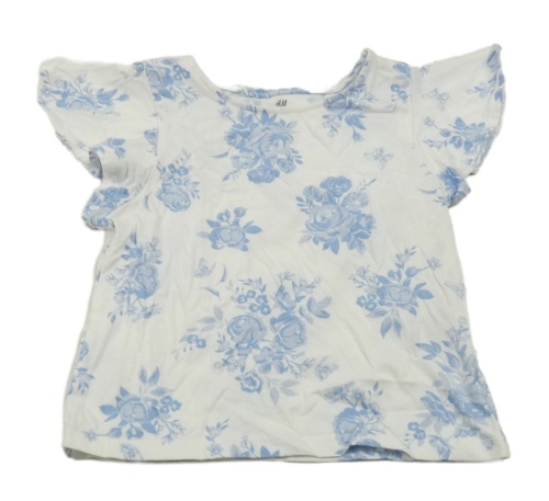 Bílé tričko s modrými růžemi a motýlky H&M