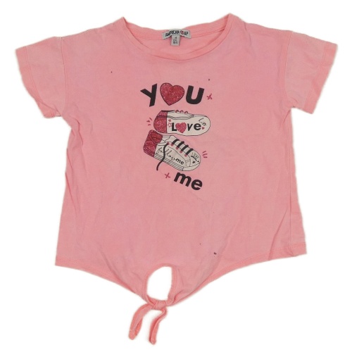 Korálové tričko s botami a nápisy a uzlem