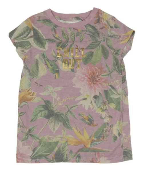 Růžovofialové tričko s květy a nápisem Next