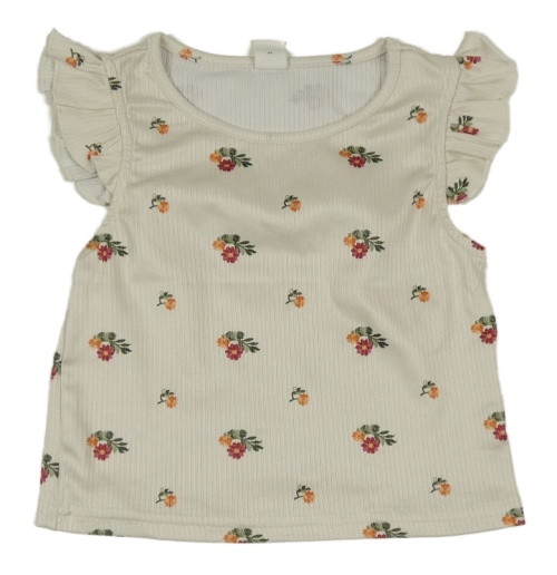 Smetanové žebrované květované tričko Shein