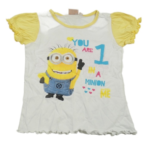 Bílo-žluté bavlněné tričko s Mimoněm a nápisem