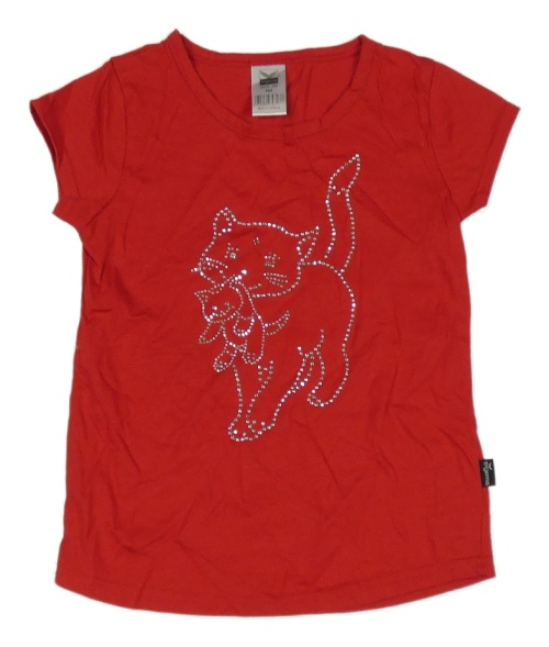 Červené tričko s kočičkou a koťátkem z kamínků trigema