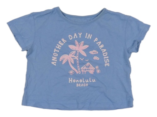 Modré crop tričko s palmami a nápisy in extenso
