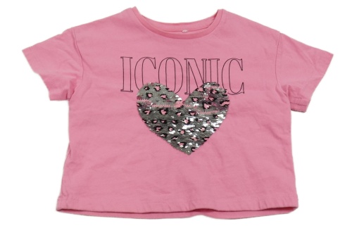 Růžové crop tričko s nápisem a srdcem z flitrů Nutmeg